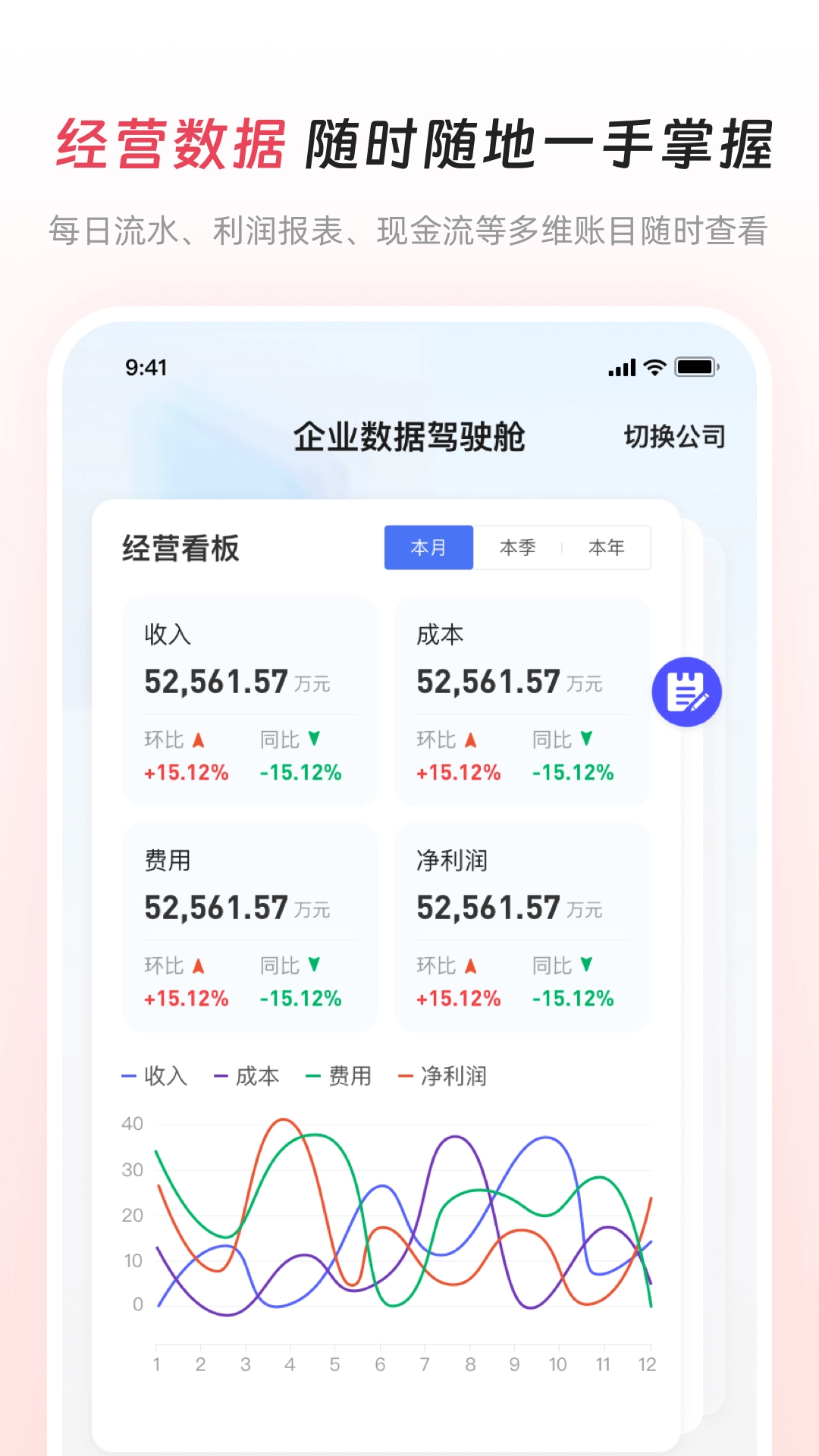 4、经营决策支持服务,依托大数据分析技术,为企业生成直观可视的经营报表,并提供智能化的决策参考建议。