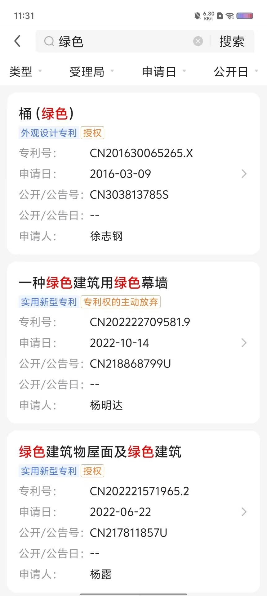 2、输入专利名称、申请号、公开号查询。