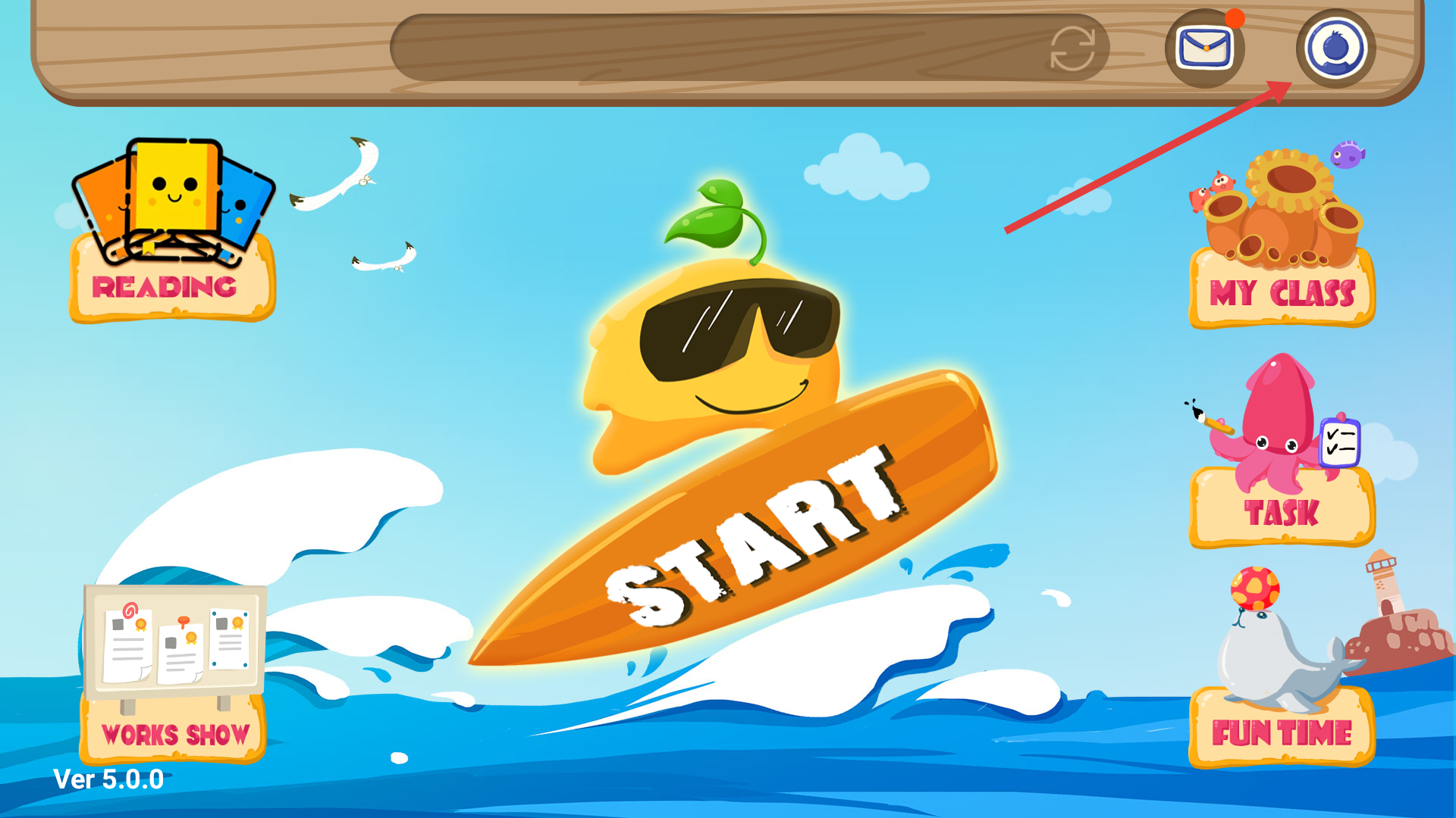 1、在主界面点击右上角的对应入口,就能进入个人中心;此外,还可以通过【START】按钮启动核心功能,或者使用【READING】【MYCLASS】等模块。