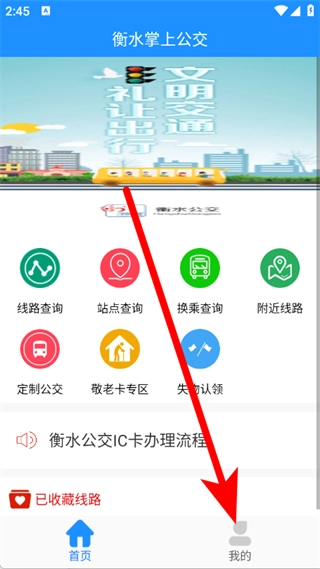 1、打开衡水掌上公交,在首页点击底部我的,进入页面。