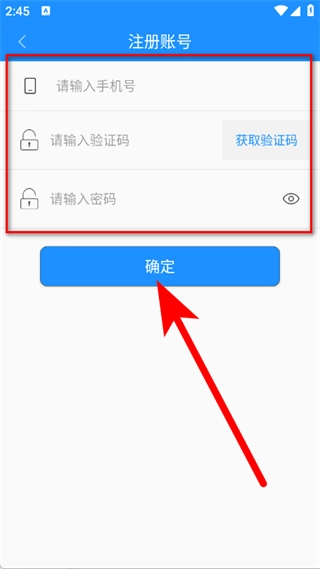 4、输入手机号、验证码、密码后,点击确定,完成注册账号。