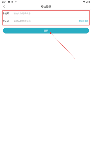2、进入【短信登录】页面,输入【手机号】后点击【发送验证码】按钮,填写收到的验证码,再点击【登录】按钮,即可完成验证登录流程。