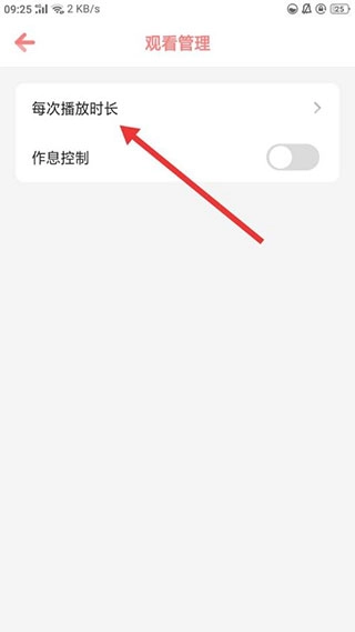 3、进入到观看管理界面后,再点击每次播放时长选项即可。
