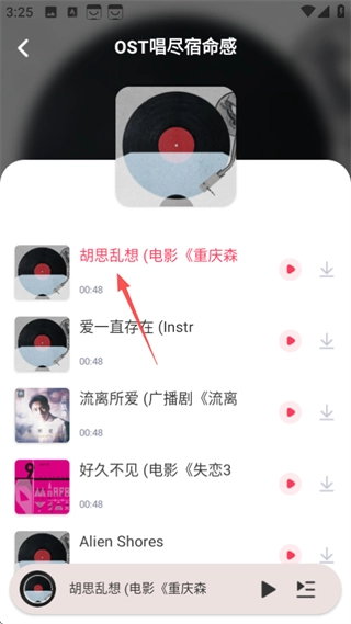 在歌曲列表页面,选中想要播放的歌曲,即可进入播放详情页面。
