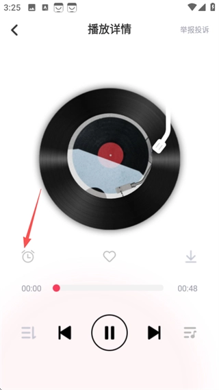 3、进入播放详情页面后,点击定时图标,系统会弹出定时关闭的选项菜单。