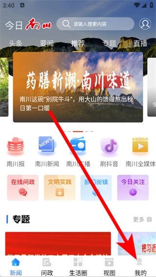 1、打开今日南川应用,点击底部导航栏中的“我的”选项,即可进入个人中心页面。