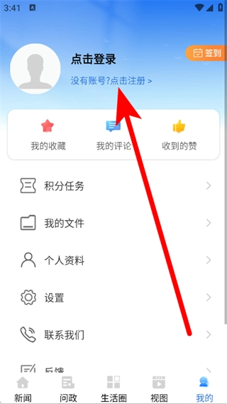 2、在个人中心页面,点击注册,进入注册流程。