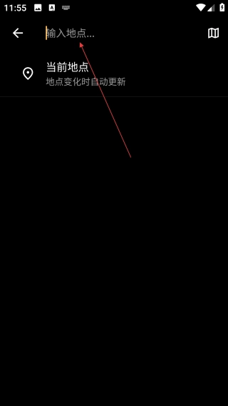 3、进入地点搜索界面后,点击【输入地点】输入框,以便输入地点名称。