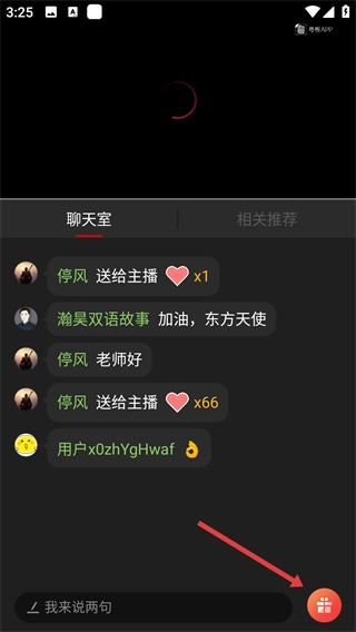 4、进入直播后,可在聊天室互动,还能点击右下角礼物按钮送礼物,尽情参与直播互动啦。