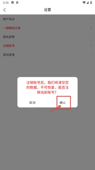 4、在弹出的注销确认窗口里,点击确认按钮,即可完成账号注销流程。