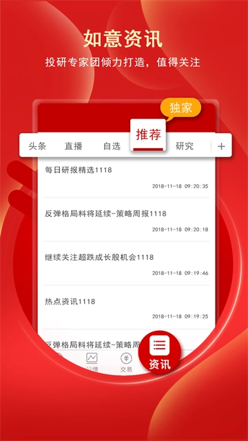 4、投资资讯:今日头条、热门话题、实时动态、公司研究等资讯实时推送