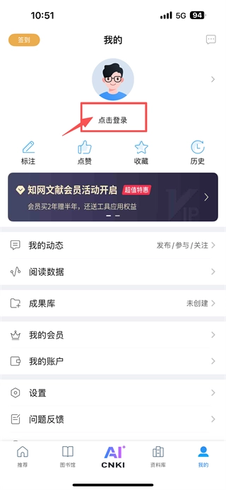 1、打开知网类学术应用,点击底部我的选项,进入个人中心页面。