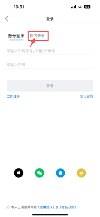 3、选择短信登录选项,进入手机号码验证页面。