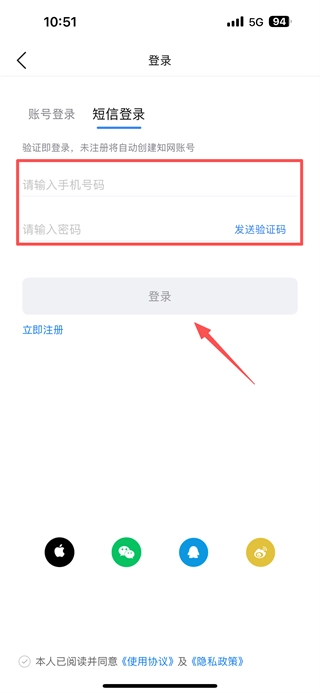 4、输入手机号码和验证码,完成账号登录操作。