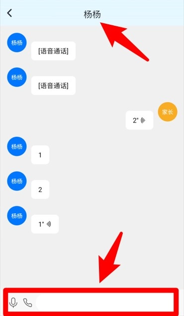4、点击联系人姓名即可进入聊天页面,可通过底部输入框发送语音或文字信息。