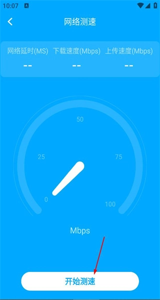 3、返回WiFi页面点击网络测速选项,进入测速页面后,点击开始测速按钮执行测速操作。