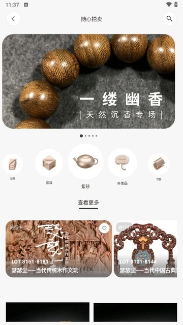 3. 浏览拍品:在应用首页浏览所有功能专区窗口及热门拍卖活动,点击对应拍卖活动即可查看相关艺术品的详细信息。