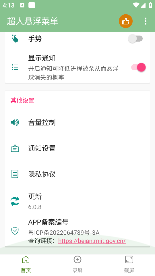 超人悬浮菜单是一款通过手势操作的软件,开启后桌面会出现悬浮球,借助它可以进行录屏、截屏、清理内存、快速启动应用等操作。无需在不同层级间反复切换,单手就能实现便捷流畅的操控,例如想要记录下精彩画面,只需点击悬浮球中的录屏按钮即可,完全不必使用组合键,大大简化了操作步骤。