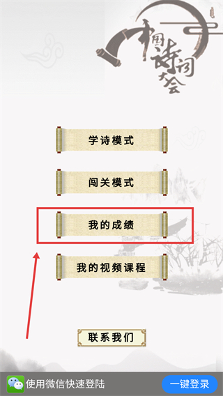 2、在功能选择页,点击【我的成绩】选项,进入学习数据统计界面,查看学习相关记录。