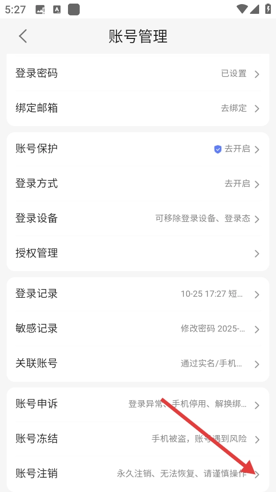 3、进入账号管理页面后,找到并点击【账号注销】选项,即可进入注销流程。