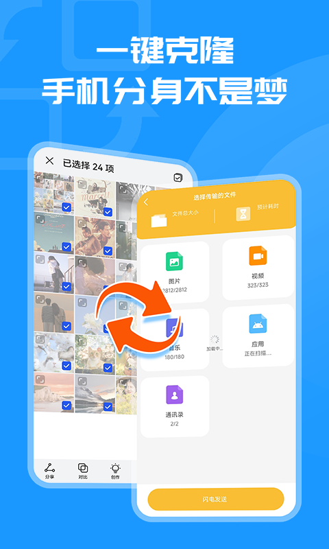 换机克隆同步大师是一款高效的数据迁移工具,旨在简化用户更换手机时的数据转移难题。它支持联系人、照片、视频、软件等多种类型数据的迁移,确保用户能在新设备上快速找回旧设备中的所有重要信息。该软件秉持为用户提供简单、快速且安全的数据迁移体验这一设计理念,让用户在换机过程中无需担忧数据丢失或转移操作的复杂性。借助直观易懂的操作流程,用户可以轻松完成从旧手机到新手机的全部数据迁移,大幅提升了换机的便利性。
