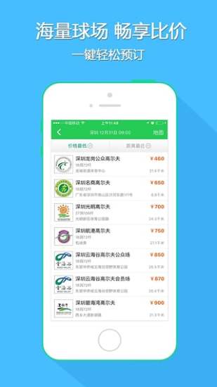 1、全民高尔夫提供实时的高尔夫球场信息,包括场地状况、开放时间、价格等,方便用户做出合适的预订选择。