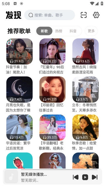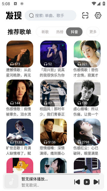 打开这款软件,里面汇聚了各种各样的歌单,你可以通过搜索功能找到自己喜欢的音乐。