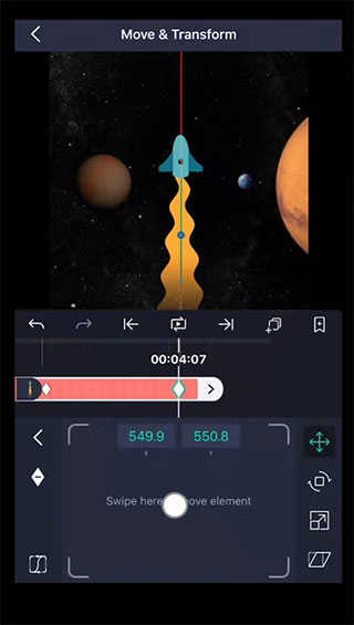 使用编辑面板(如“移动和转换")调整图层位置、颜色和其他属性。