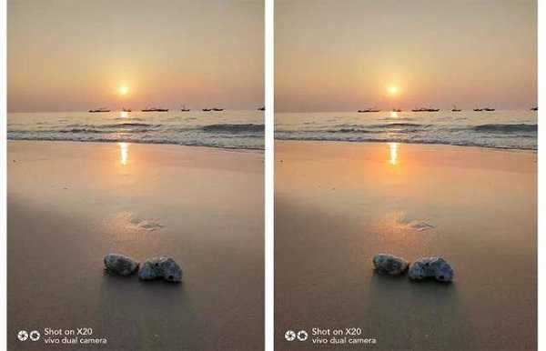 涂抹完成后即可导出保存、导出照片,前景沙滩的局部色彩处理就完成了,完全不会影响到背景天空的色彩,如下对比图: