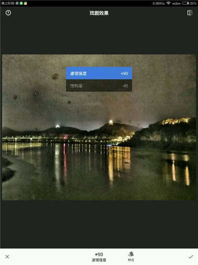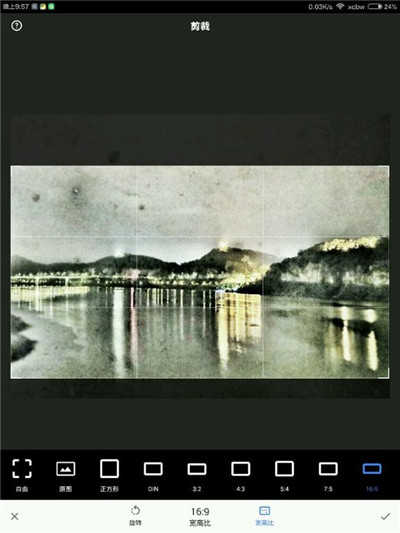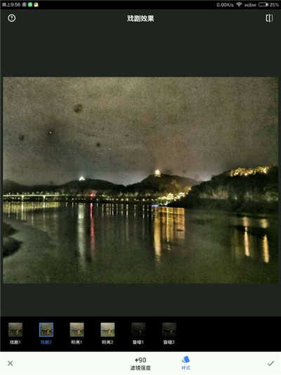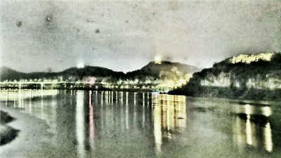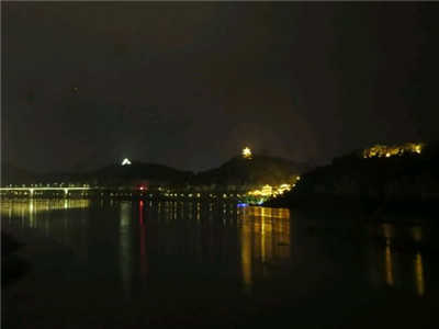 1、首先,你得有一张山水照片,这里是一张夜景。
