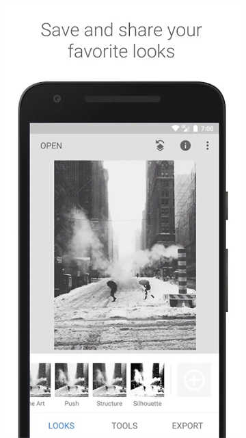 另外snapseed软件还了Google+,你可以更方便的与亲朋好友分享图片。软件一经推出就广受好评,凭借着简单方便的使用逻辑,免费等多种优点深受全球用户的喜爱,喜欢的小伙伴千万不能错过这款软件。
