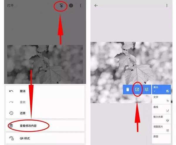 第二步,点击右上角箭头-查看修改内容-进入蒙版选项: