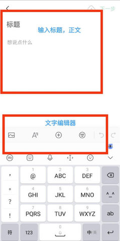 3、按照页面的提示输入“标题”和“文章正文”,点击下一步。