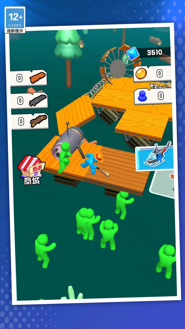 2、资源多维循环系统,砍伐树木获取木材外,可回收僵尸残骸、废弃机械,转化为武器升级与堡垒强化的关键材料。