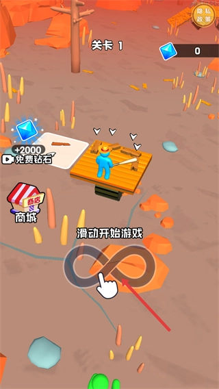 1、点击“开始游戏”按钮,进入游戏关卡界面(该游戏为12+适龄的生存建造类玩法)。