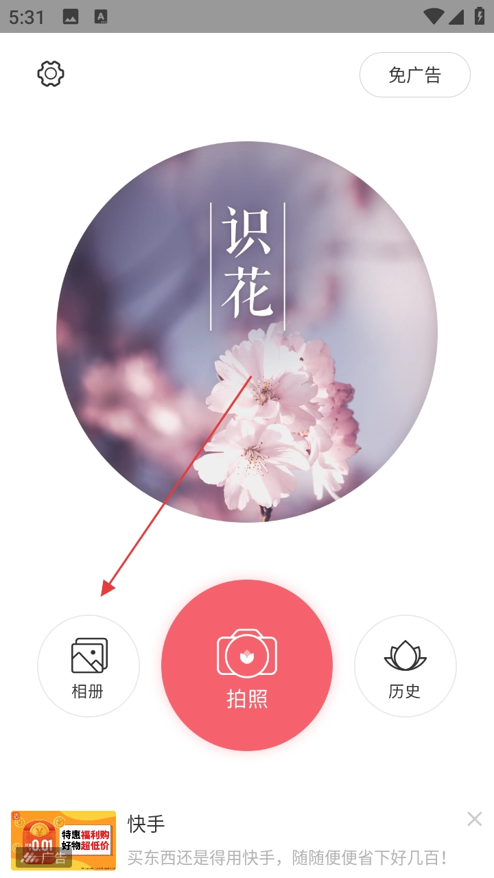 若想识别花卉,直接点击【相册】选择手机中存储的花卉图片即可。