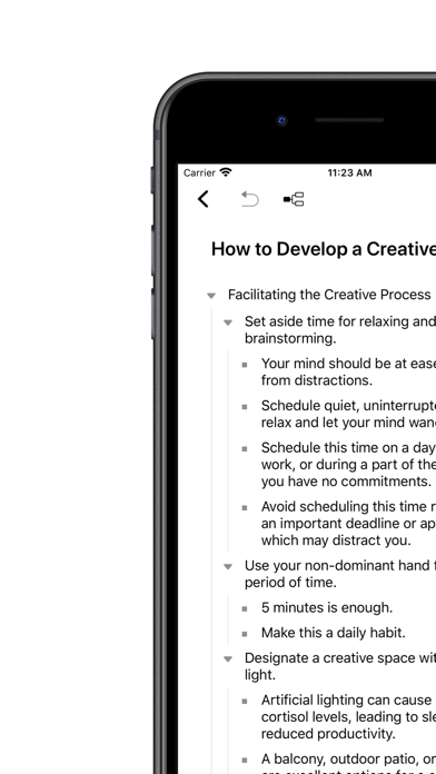 它配备桌面级思维导图引擎,敏捷、强大且稳定,让思维能在掌上和指尖自由畅游,仿佛进入不受干扰的状态。