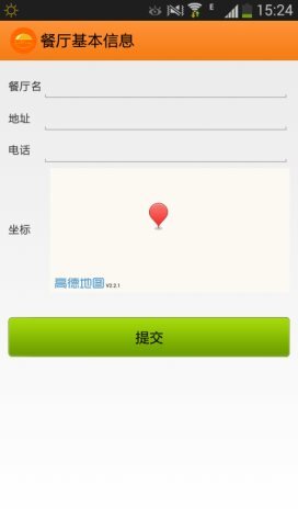 注册成功后会进入餐厅详细信息填写页面,只需将餐厅名称、地址电话、图片及地图坐标等信息填写完整并提交就可以了。