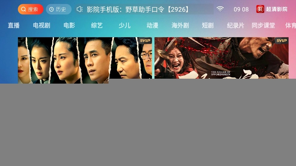 1、进入超清影院之后,点击主页上方的【历史】。