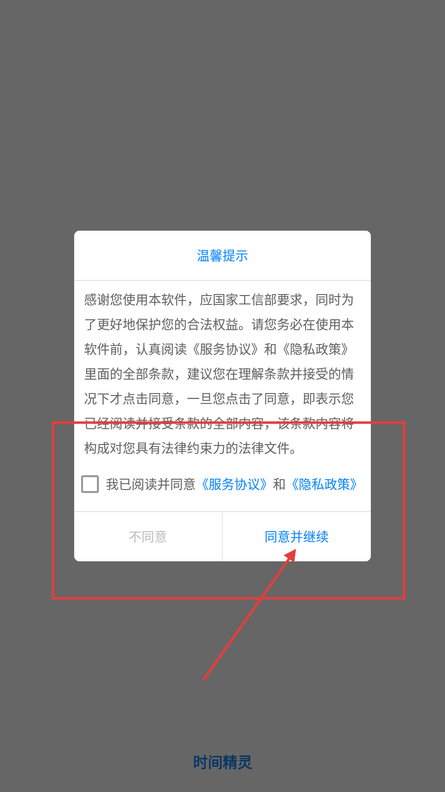 1、第一步请勾选“我已阅读并同意《服务协议》和《隐私政策》”,随后点击【同意并继续】按钮,即可进入主界面。