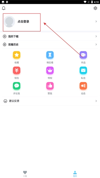 1、在“我的”页面,点击顶部的【点击登录】选项,触发登录方式选择的弹窗,开启账号登录流程。