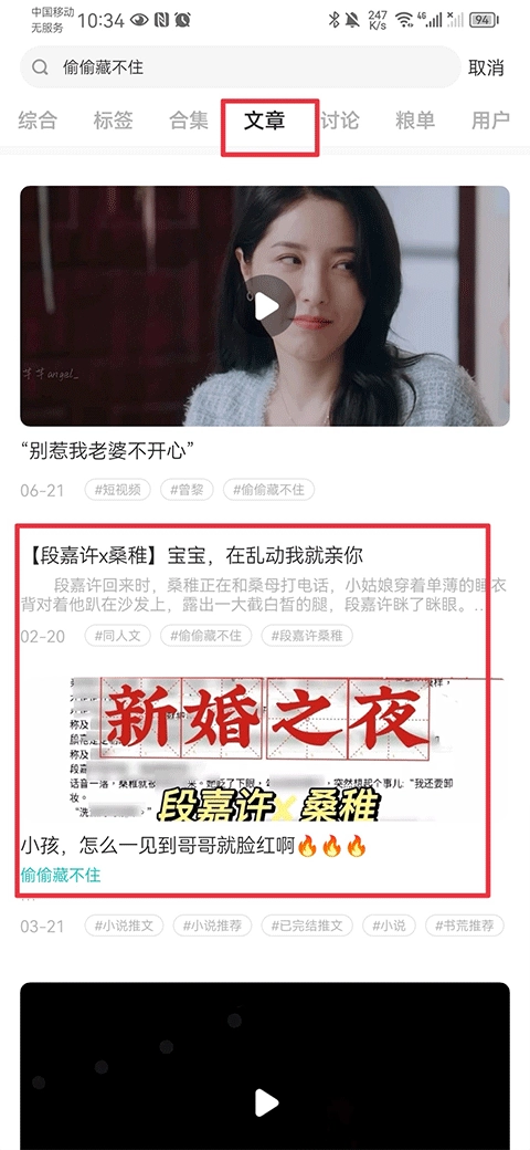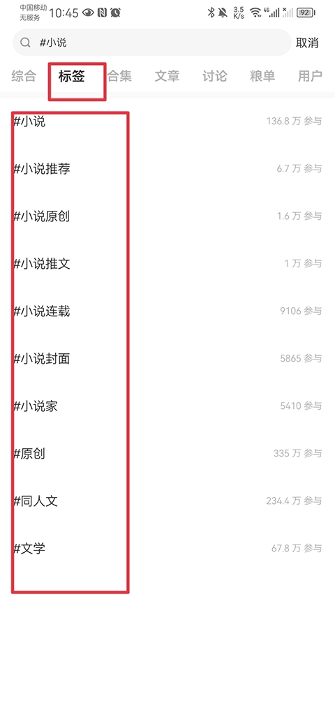 1、在首页搜索框内输入标签#小说