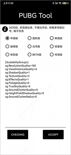 1、手机提前安装好和平精英游戏,安装本站提供的pubgtool画质助手,然后打开软件可以看到相关的说明;