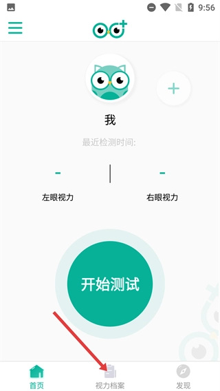 1、在首页底部点击【视力档案】按钮,进入对应页面,该页面展示【左眼视力】【右眼视力】区域,也可点击【开始测试】按钮。