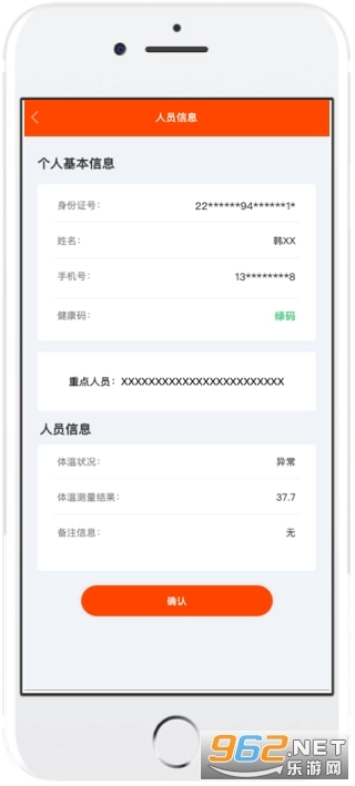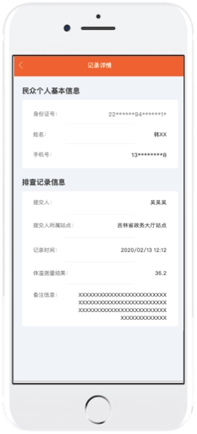 (二)成功扫描后能够查看被检查人员的基本信息,这些基本信息经过加密处理,与此同时可以填写其他相关信息,点击“确认”按钮即可提交该排查记录。