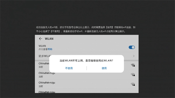 当成功连接无人机后,部分机型可能会弹出以下提示,您只需点击“使用”按钮即可。