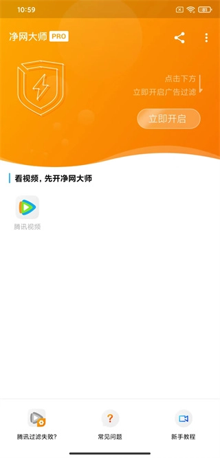 在本站安装净网大师pro,打开进入主页后点击立即开启,开启该功能的前提是您的手机内已安装视频播放器。