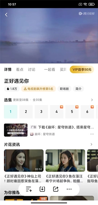 打开腾讯视频后,挑选一部影视作品,例如选择《遇见你》,然后点击它。