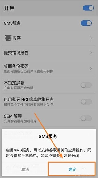 下方会弹出一个启动GMS的服务提示,无需理会,直接点击确定即可。