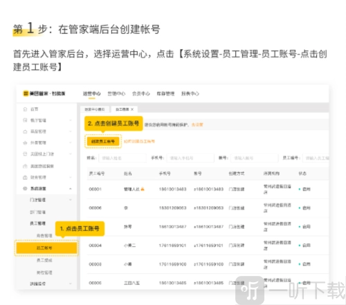 第 1步:在管家端后台创建帐号